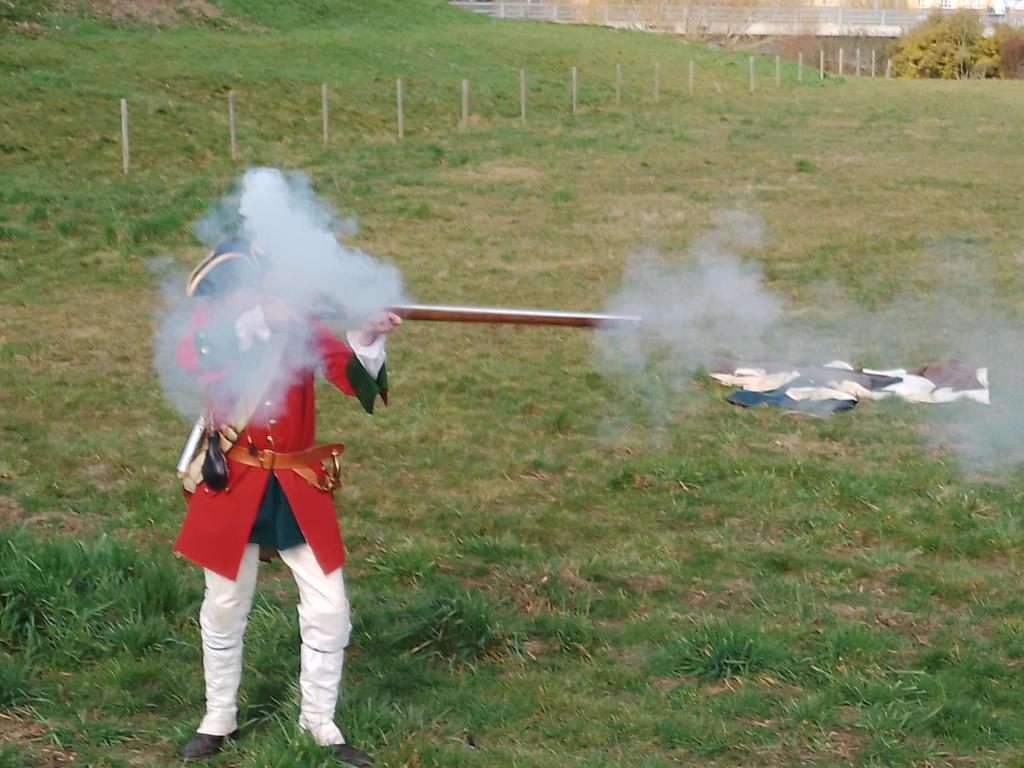 It was fascinating to see them load the weapons, which showed just how tricky and unreliable it could be. One firing resulted in a ‘flash in the pan’, where the charge did not ignite properly. It was also interesting in terms of sensory history. Soldiers armed with muskets had to bite off the top of their paper cartridge, so they often got some black powder in their mouths, which is very salty and dehydrating. The different sounds of the muskets and the rifles were also noticeable, from the ‘boom’ of the Brown Bess to the ‘crack’ of the Martini-Henry.
