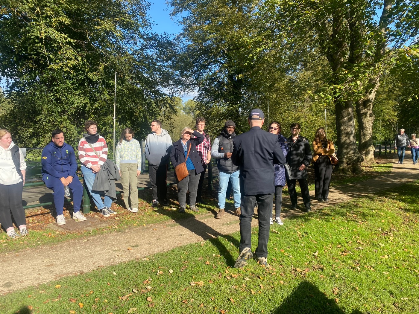 We were joined by Graham Evans, Chair of the Northamptonshire Battlefields Society, who was able to give us a very interesting guided tour of the battlefield site. While I am an expert in the fifteenth century I am quite happy to admit that military specifics are not my thing, and so was absolutely delighted that Graham agreed to join us and give the students (and me!) a very helpful overview of how the battle would have played out. He was also able to talk about the process of writing the new information boards that are now featured on the site, making the battlefield more accessible to the public (because let’s be honest, without some professional insights a battlefield looks just like… a field!).